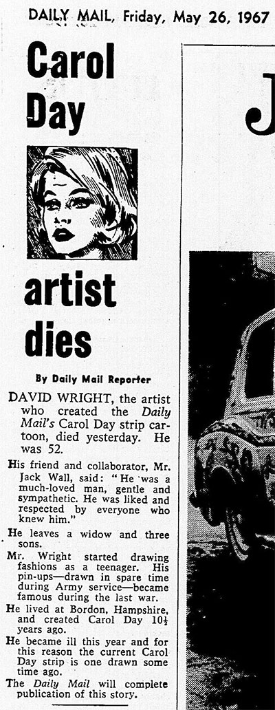 - May 26, 1967—The Daily Mail: Carol Day Artist Dies